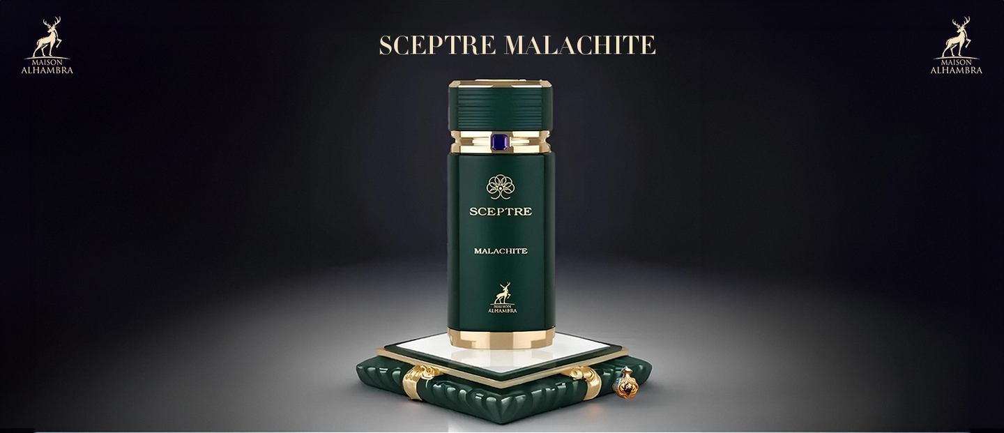 A scent of distinction—Sceptre Malachite, where green tangerine meets the allure of vetiver and musk